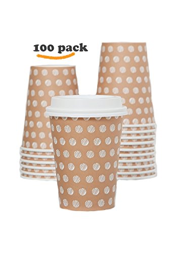 The #1 Most Stylish Disposable Paper Coffee Cups by Little Beans - 100 pack Insulated Hot Cup To Go - Quantity 100 Cups & 100 Secure Lids - Best Quality Guaranteed - 12 ounce size
