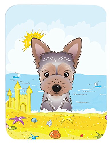 Caroline's Treasures BB2100LCB "Yorkie Puppy Summer Beach" Glass Cutting Board, Large, Multicolor