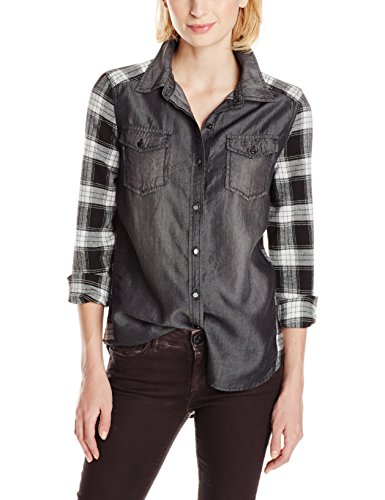 This plaid shirt is the perfect item to add to your closet this season. Perfect for the cooler days ahead and you will still be looking fashionable. Features a denim and plaid combo.
