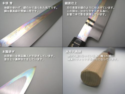 사카이 미노루광 부엌칼 미노루광 부엌칼 생선회 부엌칼 〔 류인 부엌칼 〕 본소 청 〔 야스기 강철청 강2강철 〕 240mm
