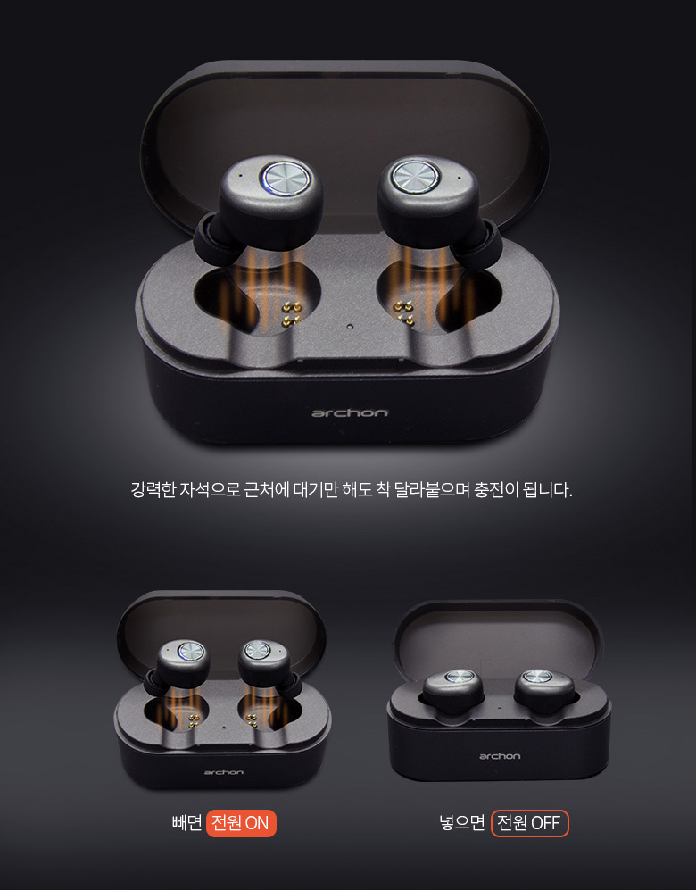 ボタンを一度だけ押して音楽が再生され、充電ケースに保管をすると電源が自動的に終了します。