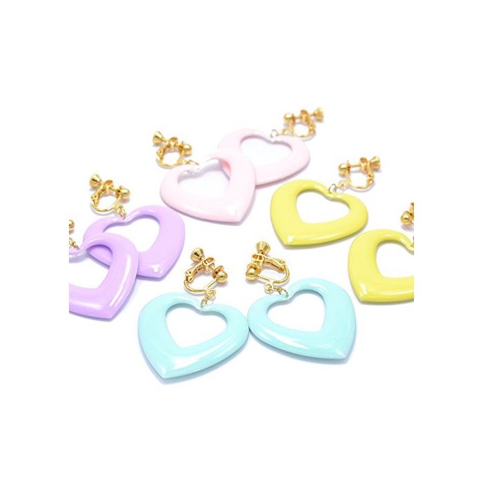 PARISKIDS 파스텔 컬러 하트 귀걸이 【 핑크 】