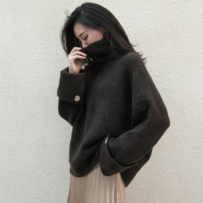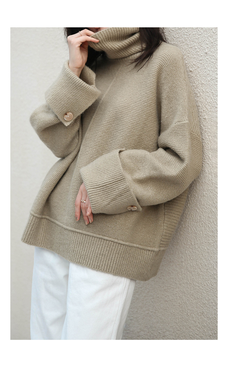 ルーズなシルエットで女性らしくゆったりと着用できるシンプルきれいなニットです。