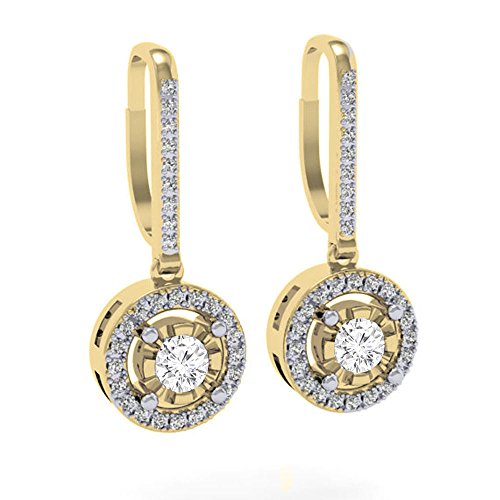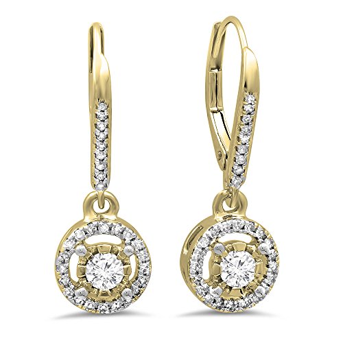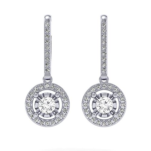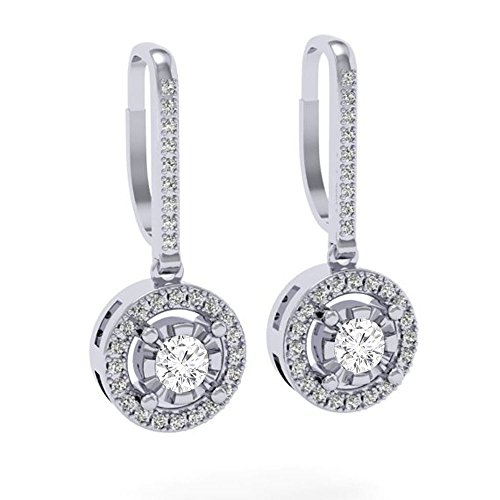 -. Title : 0.50 Carat (ctw) 14K Gold Round Cut Diamond Ladies Cluster Halo Style Dangling Drop Earrings 1/2 CT