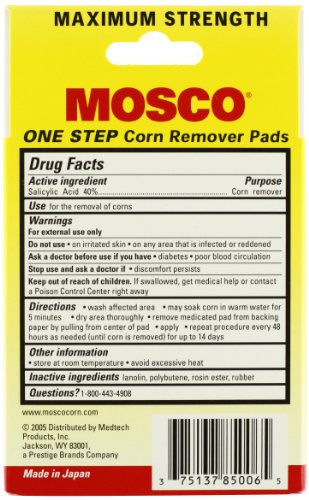 ReleaseDate : 2015-06-30 Studio : Medtech Product Inc. Publisher : Medtech Product Inc. Binding : Health and Beauty Product Description Adhesive bandage holds firmly in place for comfortable fit. Soft cushion relieves painful pressure. Medicated pad fits over corn. Safe, easy, effective. Bonus pack: 8 pads for the price of 6. Made in Japan. 0