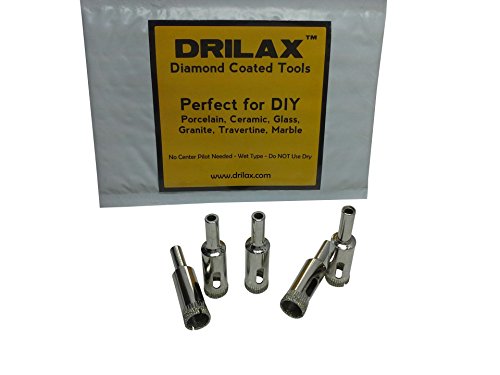 Drilax™ 5 Pcs Diamond Drill Bit Set 1/2" (0.5 In) Wet Use for Tiles, Glass, Fish Tanks, Marble, Granite, Ceramic, Porcelain, Bottles, Quartz - Lot 5 Diamond Coated Drills - Kitchen, Bathroom, Shower, Lamps Drilax051313