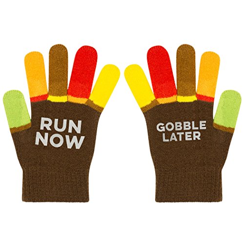 Product Description These Run Now Gobble Later Turkey Running Gloves are a huge hit with runners everywhere! From the vibrant colors and festive design to the super soft knit fabric, there's so much to love about these awesome running mittens. 0