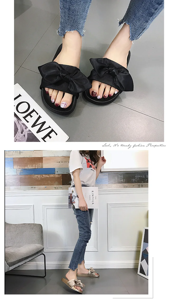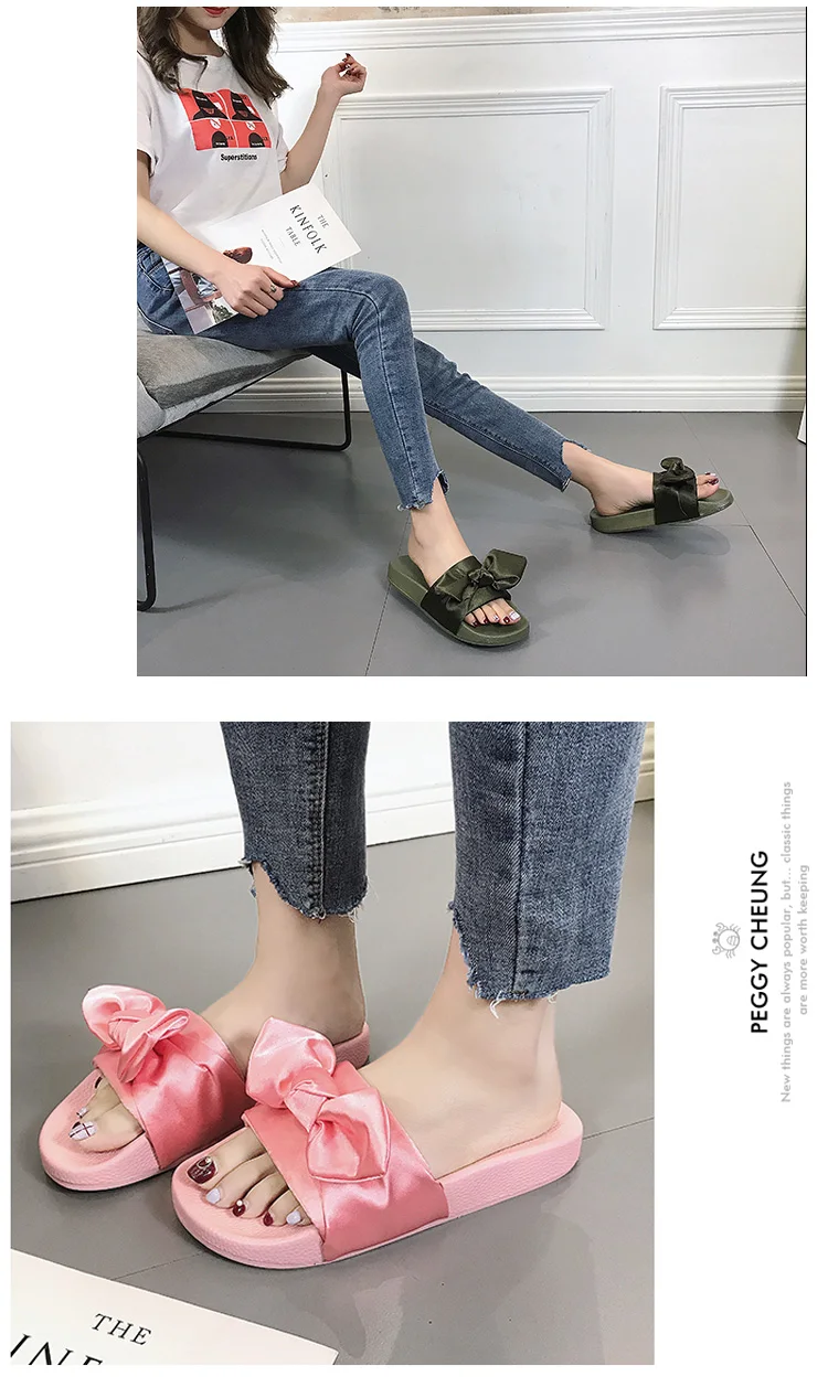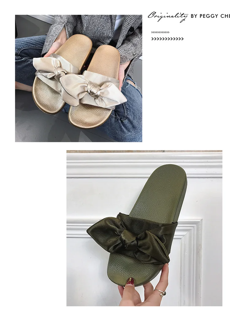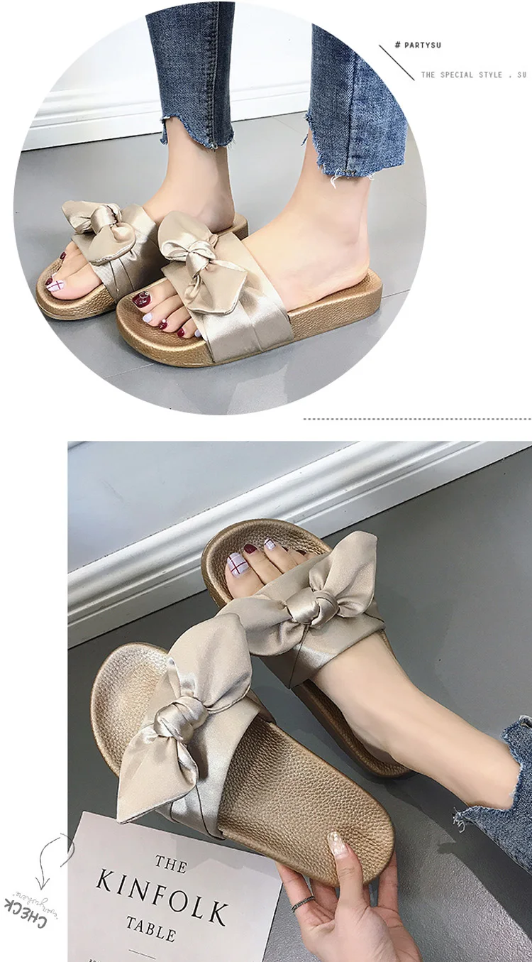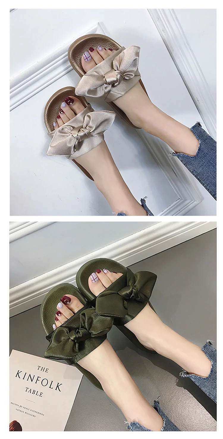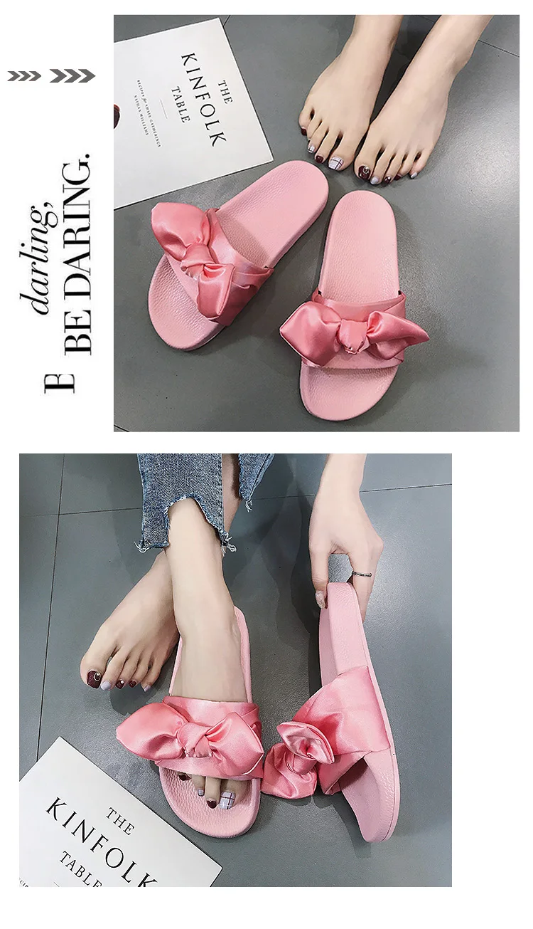 Luxury Silk Bow Slides Women:Summer Beach Shoes Woman