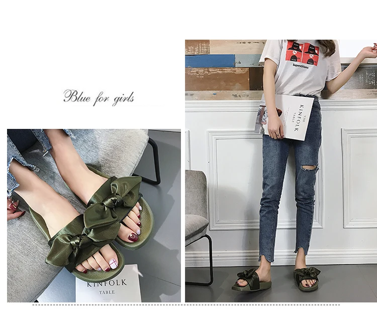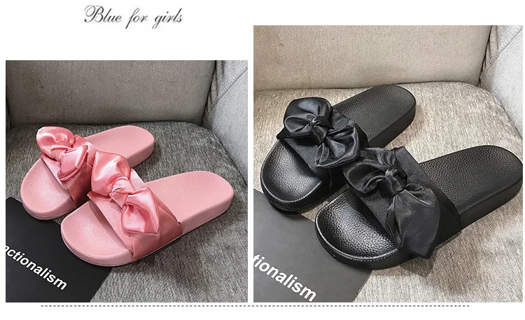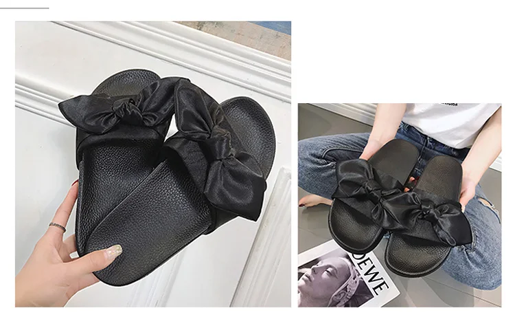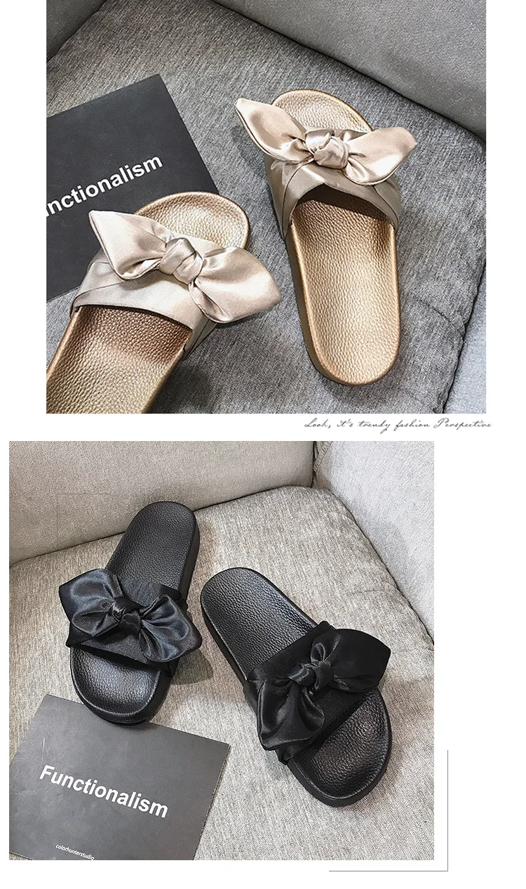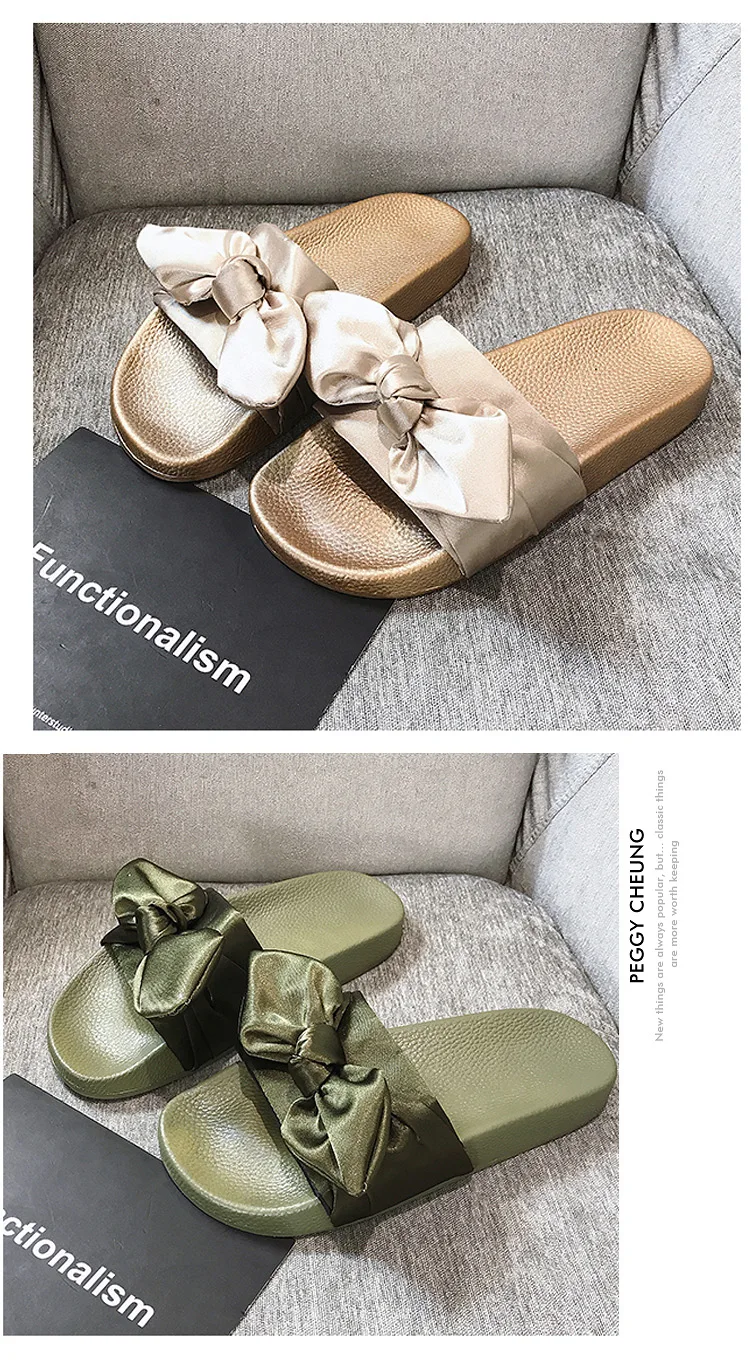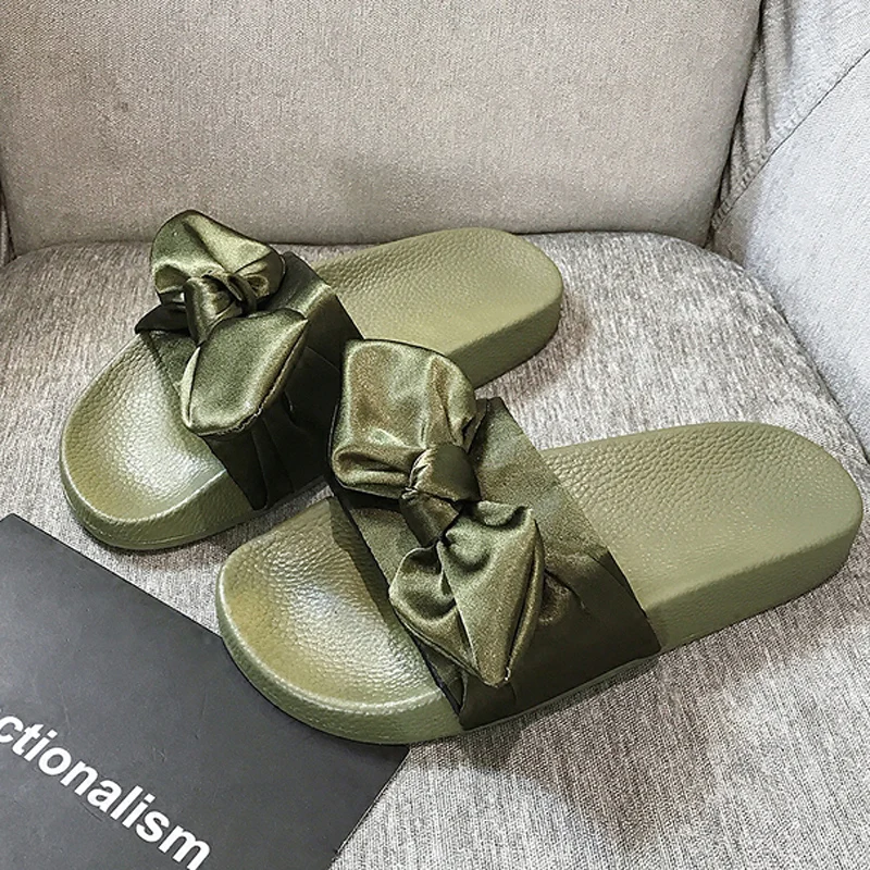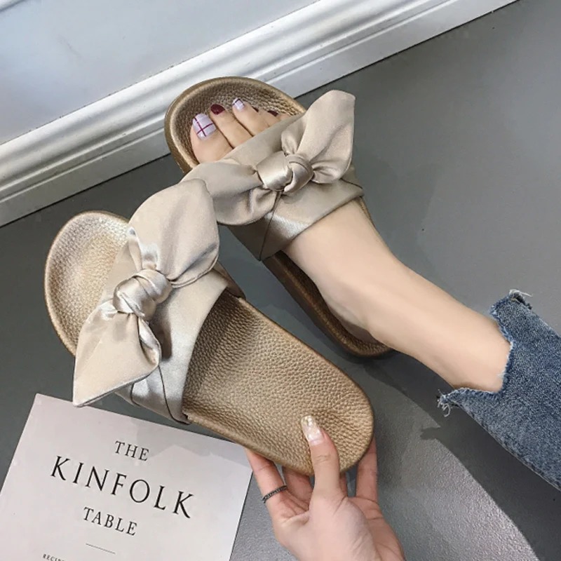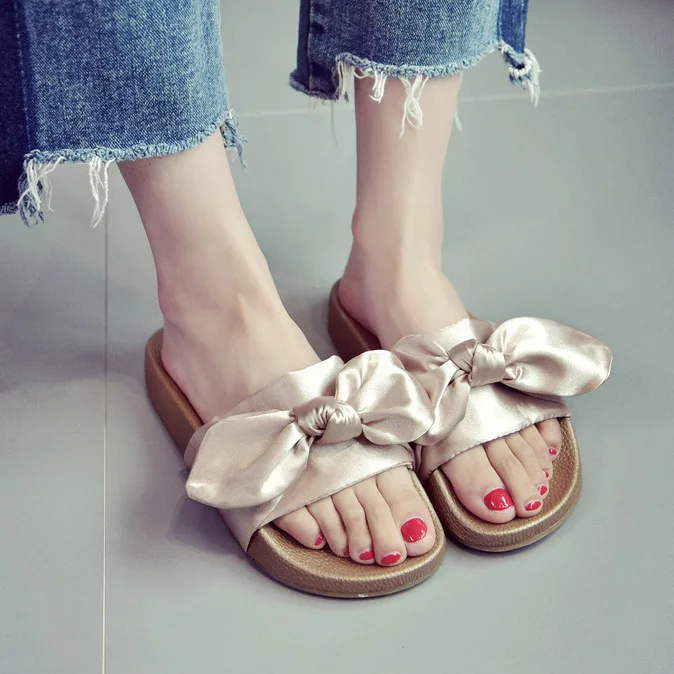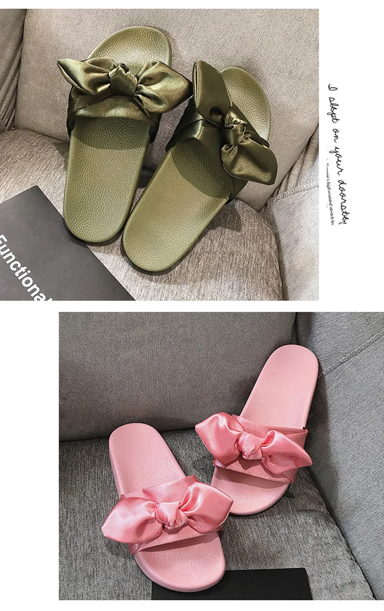 Luxury Silk Bow Slides Women:Summer Beach Shoes Woman