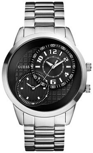 -. Title : Guess Men's U13616G1 Silver Stainless-Steel Quartz Watch with Black Dial