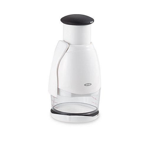 -. Feature : Shock is absorbed by an internal soft bumper which increases comfort and sound quality / Knob locks down for compact storage / Ingredients can either be chopped in the enclosed, removable cup or directly on a cutting board / Blade cartridge is easy to remove for cleaning up / Includes spoon for scooping