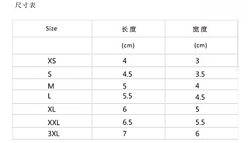 -. Feature : Dog Shoes 4 pcs/set : XS=1# Insole Dimension: Length=1.57(in)=4cm, Width=1.18(in) =3cm / S=2# Insole Dimension:Length=1.77(in)=4.5cm, Width=1.38(in)=3.5cm / M=3# Insole Dimension: Length=1.97(in)=5cm, Width=1.57(in)=4cm / L=4# Insole Dimension: Length=2.17(in)=5.5cm, Width=1.77(in)=4.5cm / XL=5# Insole Dimension:Length=2.36(in)=6cm, Width=1.97(in)=5cm