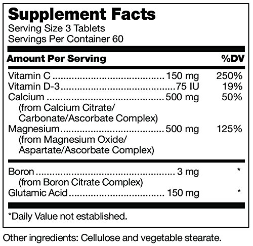 BONE HEALTH: Calcium assists in the maintenance of healthy bone structure and function. Other nutrients including boron, glutamic acid, Vitamin C and D-3 are also included to assist the body in maintaining healthy bone structure.*