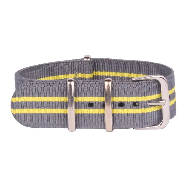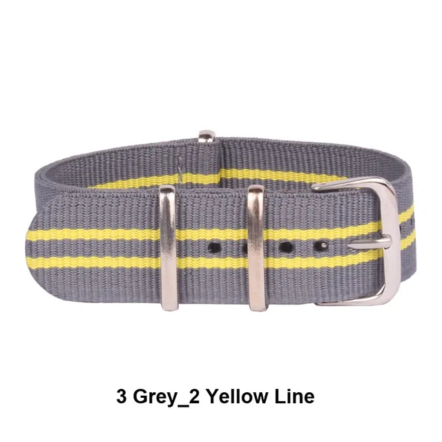 상품 내용 소재:나일론 스트랩, 스테인레스 스틸 버클 밴드 폭:20 미리메터 밴드 길이:265 미리메터 걸쇠 유형:버클 봄 바:포함 색상:3Grey_2YellowLine 포장 상세