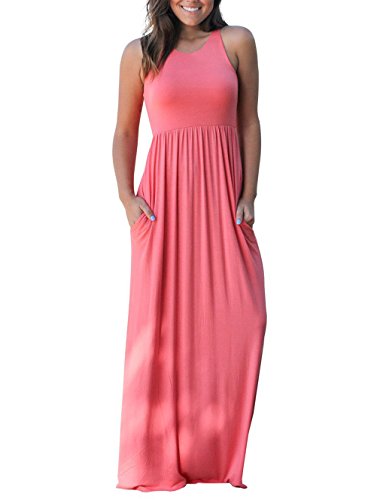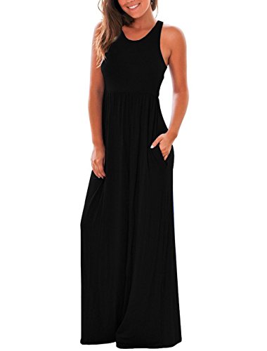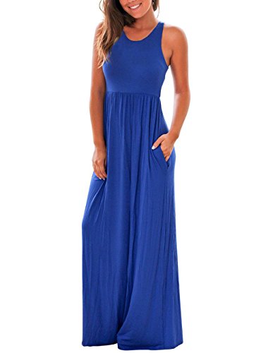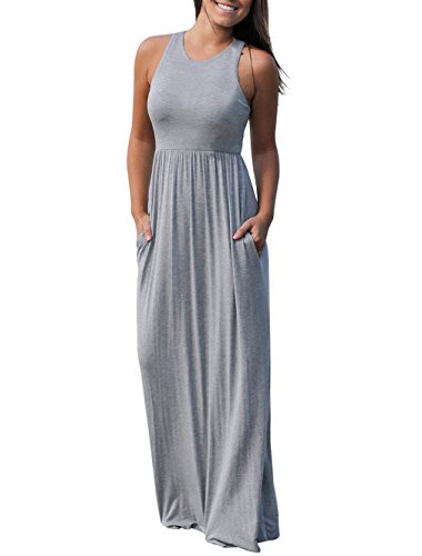 RAISEVERN Women's Summer Casual Solid Sleeveless Round Neck Racerback Maxi Dress Material:Cotton Polyester