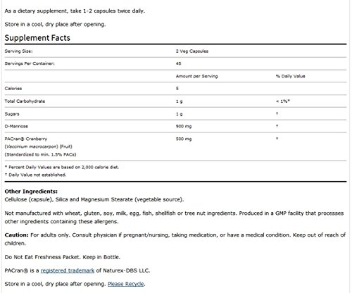 NOW Mannose Cranberry,90 Veg Capsules