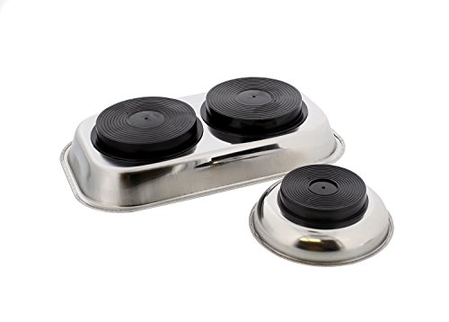 ABN Magnetic Tray Set, 4” Inches Square & 9”x6” Rectangular – Stainless Steel Trays for Small Parts & Tool Organization