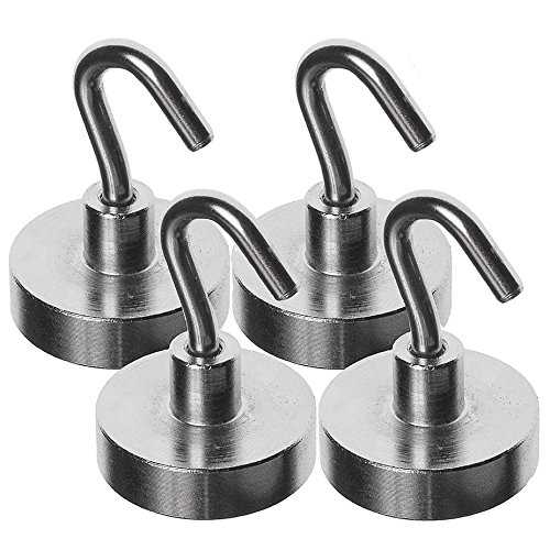 Strong 40LB Magnetic Hooks - Powerful Heavy Duty Neodymium Magnet - 4 Hook Set - Great For Your Refrigerator And Other Magnetic Surfaces - Super Strong And Will Not Scratch by Simply Hooked
