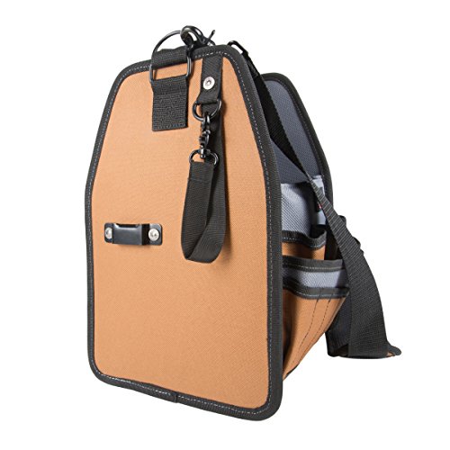 STORAGE OPTIONS: 3 large inner pockets, 1 small inner pocket, 11 outer pockets, 8 slip pockets. Additionally, it features 5 internal tool loops and 6 exterior tool loopsDURABLE: Constructed with a tough and long-lasting polyester blend to withstand any jobTOUGH: Pouch structure is puncture resistant for added securityVERSATILE: Tape measure holder, tool clip and tape tether provide added storage and organization optionsCOMFORTABLE: Detachable padded shoulder strap for added comfort1-Year Limited Warranty