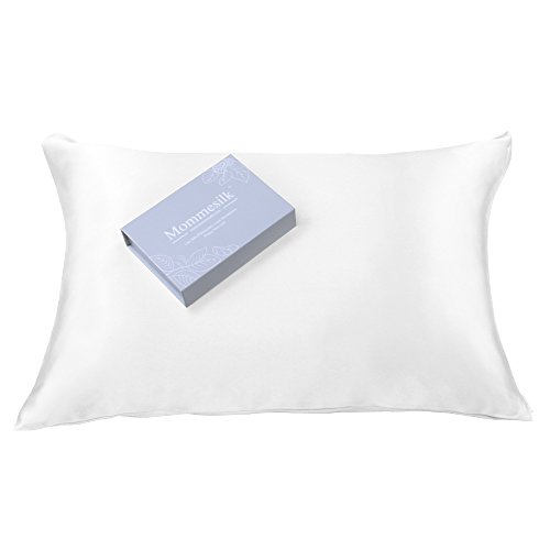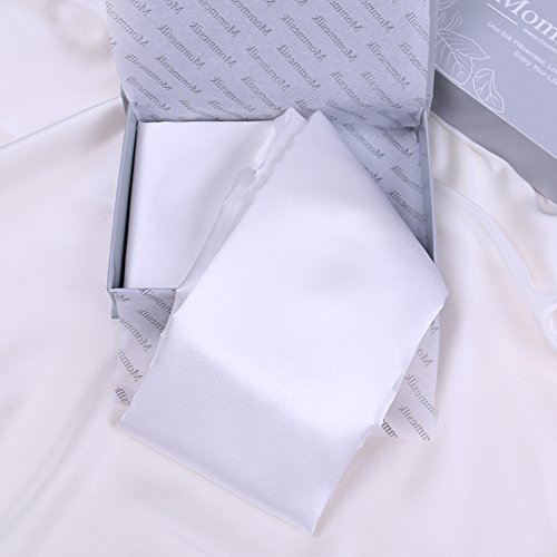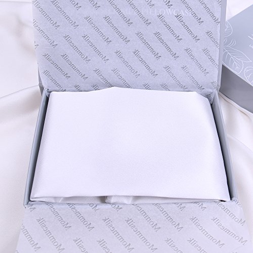 MOMMESILK 25 Momme Luxury Mulberry Silk Pillowcase for Hair and Skin with Hidden Zipper White Queen 20 x 30 inch Gift Box