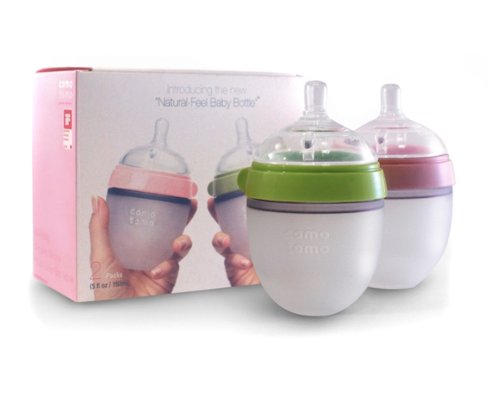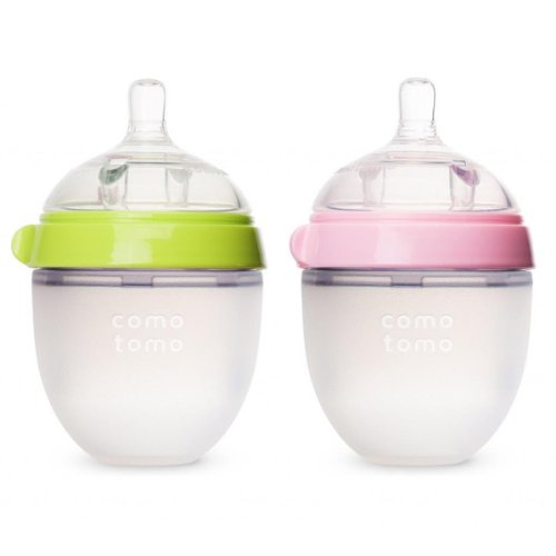 Comotomo Baby Bottle, Green/Pink, 5 Ounce, 2-Count