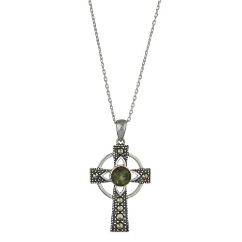 -. Feature : Sterling Silver with Marcasite and Irish Connemara Marble / Celtic Cross Pendant. / Irish Connemara Green marble specially selected from the sellers own quarry. / This pendant measures 1 inch by 7/8" / 18 Inch silver chain.