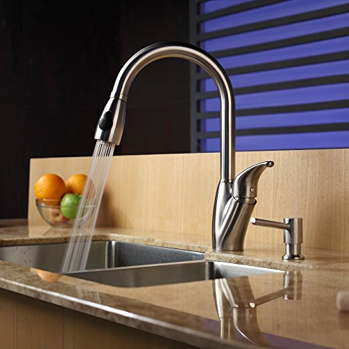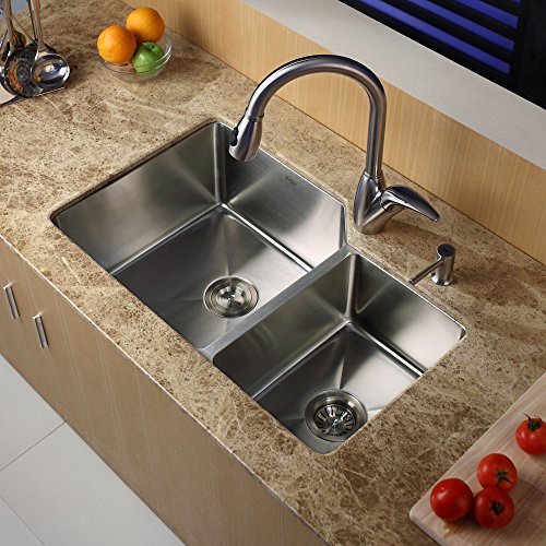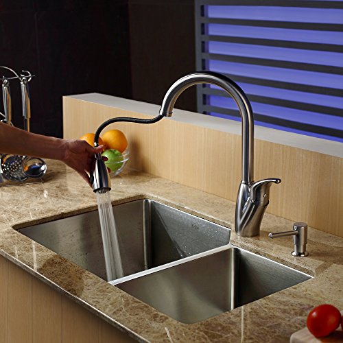 Kraus KHU123-32-KPF2120-SD20 32" Undermount Double Bowl Stainless Steel Kitchen Sink with Kitchen Faucet and Soap Dispenser