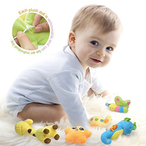 - 【Clean and Safe】:Five Soft, colorful animal plush friends from around the planet twirl, attract the baby's attention so as to train the flexibility of eyes and make your baby smile, every animal can be detached for easy clean, providing your baby a clean toys