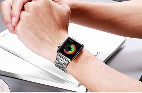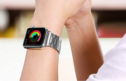 Apple Watch Band 42mm, Premium Stainless Steel Metal Replacement Classic bands Strap for Apple Watch Series 3, Series 2, Series 1 The design made by solid stainless steel metal classic Apple iWatch Wrist Band with double button folding clasp for Apple Watch, looks elegant and luxury, Good replacement band for apple watch band. Make your apple watch difference wearing in all different occasion like sporting, daily life, party, business meeting.