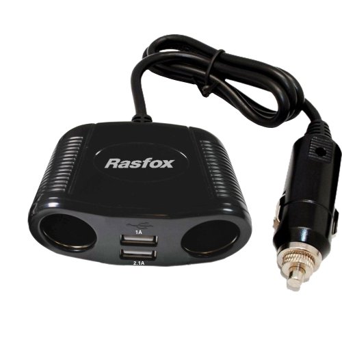 Rasfox 4-way Car Cigarette Lighter Power Adapter Convert DC Outlet Splitter 2 USB Car Charger for iPhone 5/6/7 Plus,iPad Air mini, iPod, Samsung Galaxy S5/S6/S7 Edge, PSP, GPS and More