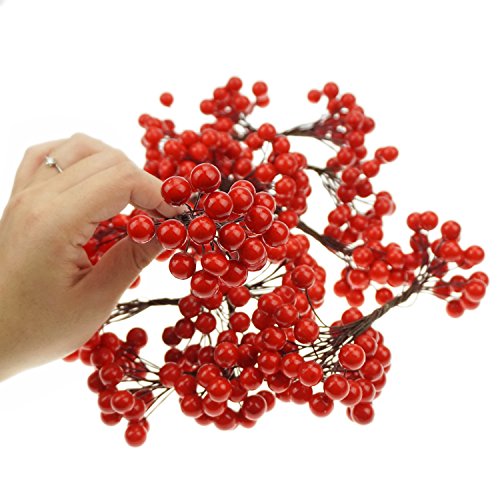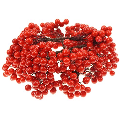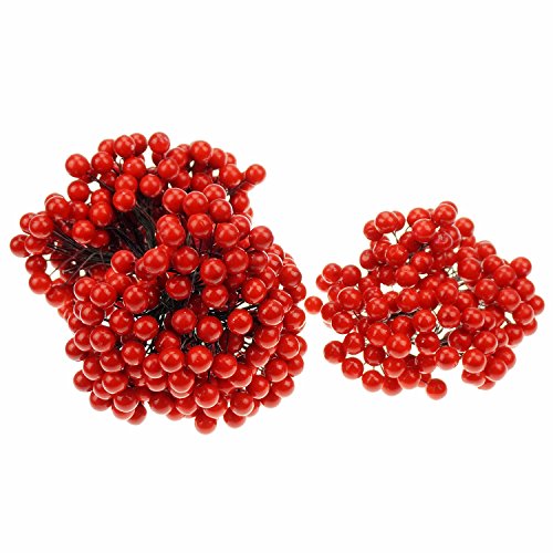 Product details: One package includes about 200 strains, and about 400 red berries. Berry diameter approx. 0.47 inch (1.2 cm), red berry stems length approx. 4.72 inches. (12 cm)