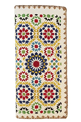 -. Binding : Apparel -. Brand : Lavishy -. Color : White -. Department : womens -. EAN : 0736902420249 -. Feature : Measures 3-1/2 inches wide by 7-1/2 inches high by about 1/2" wide / Slim bifold wallet with snap close / nside ID slot, 11 credit card slots, 4 currency pockets, zippered coin compartment / Vegan faux leather with multicolor Moroccan tile-inspired embroidery on front / Comes with gift box -. ProductGroup : Apparel -. ProductTypeName : ACCESSORY -. Size : Large -. Title : Lavishy Embroidered Large Morocco Wallet White -. UPC : 736902420249