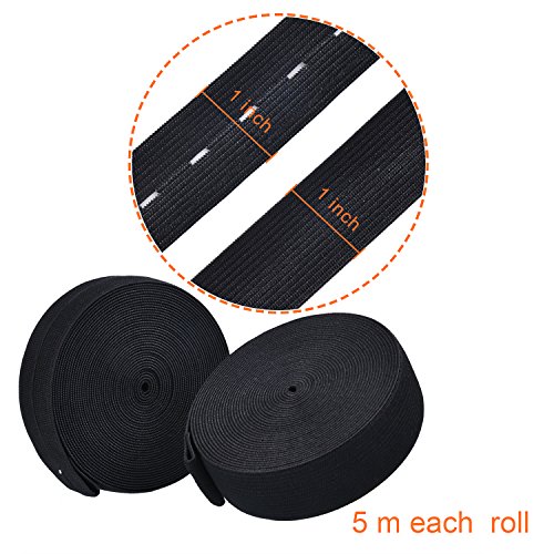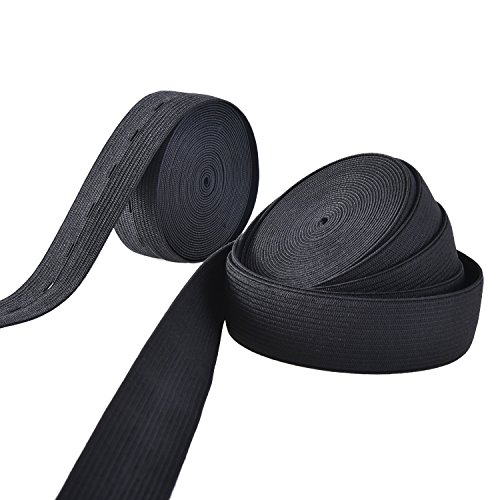 Outus 11 Yard 1 Inch Wide Elastic Spool Sewing Band and Buttonhole Elastic Band, Black, 2 Pieces (5.5 Yard of Flat, 5.5 Yard of Buttonhole)