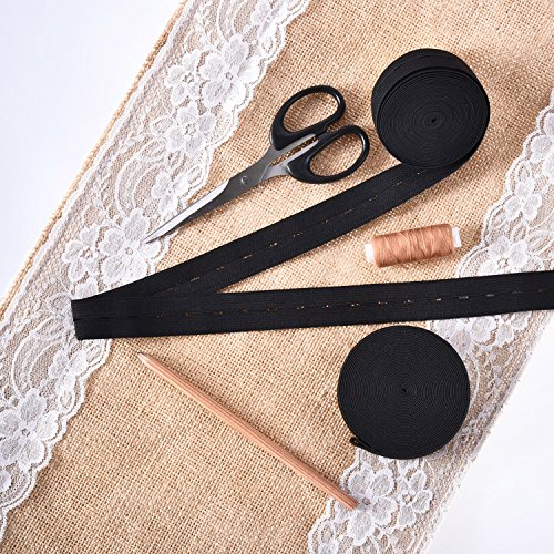 - Elastic spool measurement: both elastic spools are approx. 2.5 cm/ 1 inch in width, 5 m/ 5.5 yard in length, 10 m/ 11 yard totally, medium thickness, black color