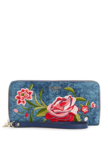 (GUESS)/Accessories/Handbags/DIRECT FROM USA/GUESS Heather Denim Floral Zip-Around Wallet
