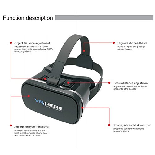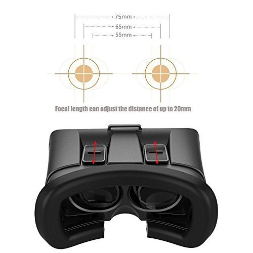 -. Feature : ✔Magnet-Adsorbed easy removing front cover for phone cooling you can charge and use earphone,Myopia can directly wear glasses to watch too / ✔ Button Adjustment,Two tranches button of Interpupillary distance and Focus adjustment,greater precision,more convenient and stable knobs / ✔Hree Adjustable straps for flexible wear,high grade perforated leather material suitable nose bridge and face foam protector,bring you ultra comfortable feeling / ✔Oversized 42mm lens imports,shocking 3D Immersive Experience Adjustable Pupil Distance (PD) and Focal Distance (FD)at a range of 55mm - 75mm,different visual enjoyment / ✔Compatible with Android and iphone with 4.7-6.0 inch screen, more than 3000 virtual reality apps on Apple App Store and Google Play Store for you download to enjoy shocking 3D effect.