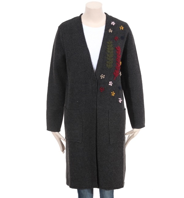 SATIN, 플라워 자수로 포인트를주어 세련스러운 스타일 감각을 연출하는 브이넥 롱니트 가디건입니다