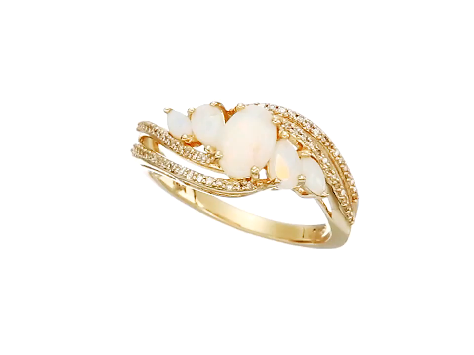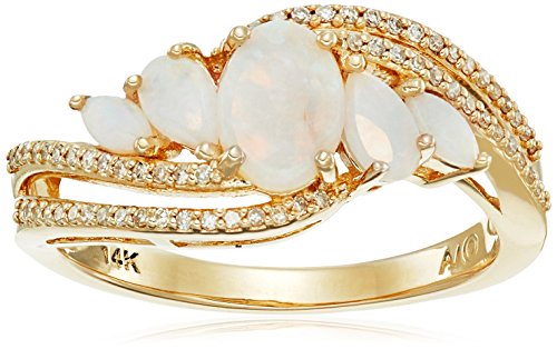 14k Yellow Gold Five Stone Oval Opal with Diamond Ring (1/10cttw, I-J Color, I2-I3 Clarity), Size 7