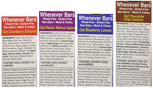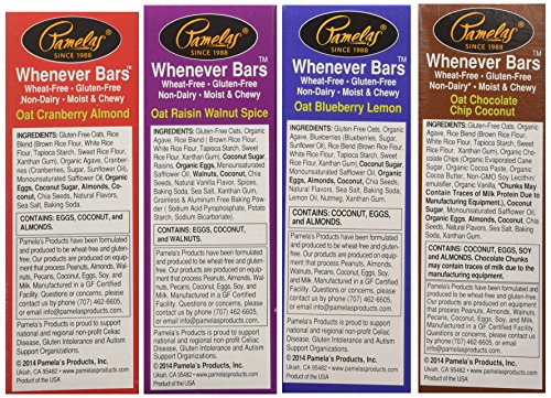 -. Feature : Pamela's Products Whenever Bars Variety 4 Pack - / Oatmeal Bluberry Lemon, / Oatmeal Chocolate Chip Coconut / Oatmeal Cranberry Almond / Oatmeal Raisin Walnut