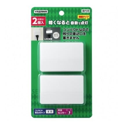 | センサーが周囲の明るさを感知し、自動で点灯/消灯します。コンパクトで周りの差込口の邪魔になりません。壁から出っ張らない薄型ボディで廊下などにオススメです。お得な2個パックです。 |