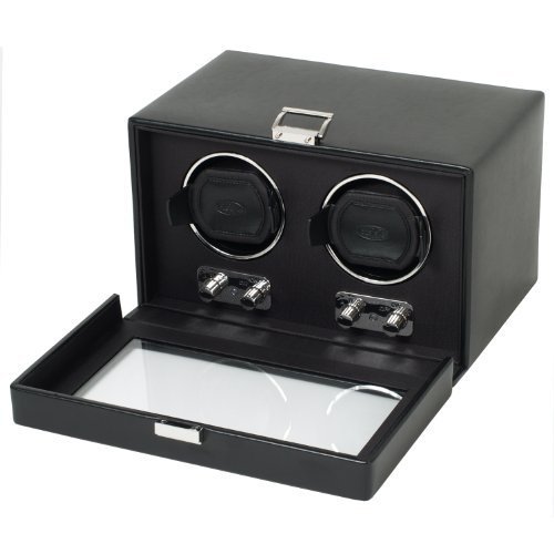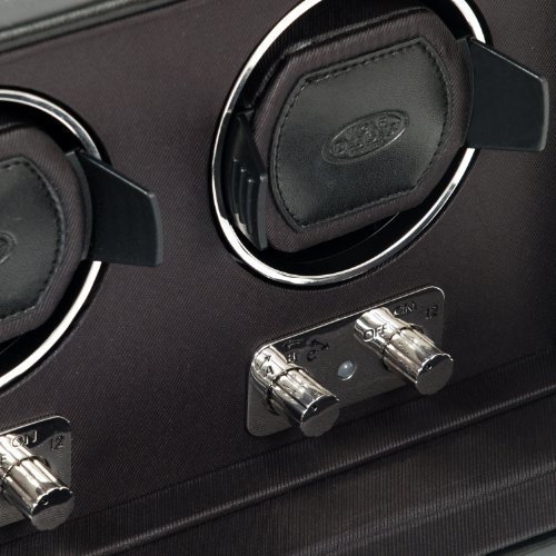 -. Binding : Watch -. Brand : WOLF -. Color : Black -. Department : mens -. EAN : 0098152019575 -. Feature : Preset at 900 Turns Per Day / Lock-In cuff that can accommodate a wrist in excess of 10" / Runs on either 3.3V Adapter (included) or D-Cell Batteries (not included) / Rotation Options- Clockwise, Counter-clockwise or Bi-directional / Start Delay Options - 10 seconds or 12 hours -. Label : Wolf Designs -. Manufacturer : Wolf Designs -. Model : 270102 -. MPN : 270102 -. PackageQuantity : 1 -. PartNumber : 270102 -. ProductGroup : Watch -. ProductTypeName : WATCH -. Publisher : Wolf Designs -. Studio : Wolf Designs -. Title : Wolf Designs Module 2.1 Heritage Double Watch Winder with Cover, Black -. UPC : 098152019575