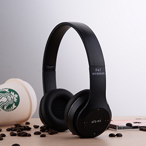 HyRich P47 Bluetooth Wireless Headphones, Over Ear Foldable Headset with Microphone Stereo 3.5mm Audio Earphone ,Support FM Radio TF for PC TV Smart Phones & Tablets etc (Black)