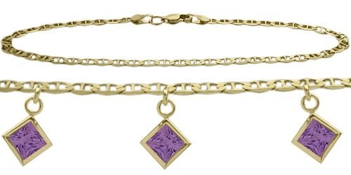 -. Title : 14K Yellow Gold Mariner Anklet with Genuine 1.80 Carat Amethyst Square Charms