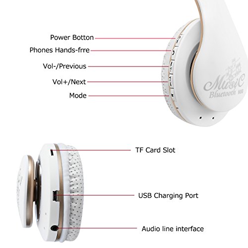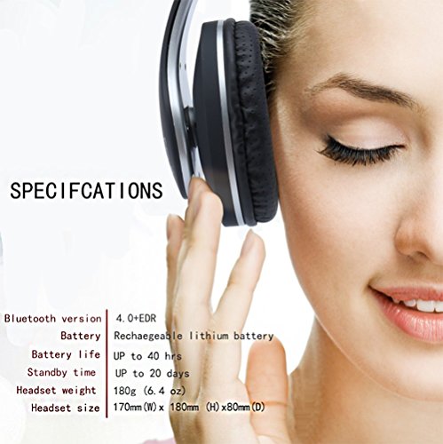 -. Feature : Active Noise Cancelling technology----turn off the noise cancelling mode by flipping the switch when you needed. / Stereo Sound Quality: With Bluetooth connectivity, pairing with headphone via Bluetooth took a few seconds. Up to the transmission distance of 10 meters, with strong interference, high fidelity stereo sound for great communication and music listening / Hands-free Talking And Volume Control: The built-in mic,remote and volume control lets you pick up calls and skip between tracks without missing a beat. / Adjustable Hinge: The adjustable headband gives your headphones some impressive flexibility so they can adapt to the shape of your head for a perfect fit. / Widely Compatible: headphones have several options for listening enjoyment.. Use with all your favorite devices like Apple iPhone, iPad, iPod, Android, Laptop,Computer,Galaxy,MP3, MP4 and other audio devices. you can use a TF/Micro SD card with loaded MP3 music and listen to the songs directly on your headphones. 3.5 mm Port for wired usage.