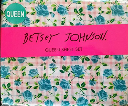 Betsey Johnson Plaid Roses Queen Sheet Set Pink Blue and Green