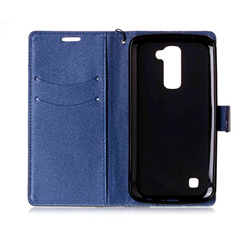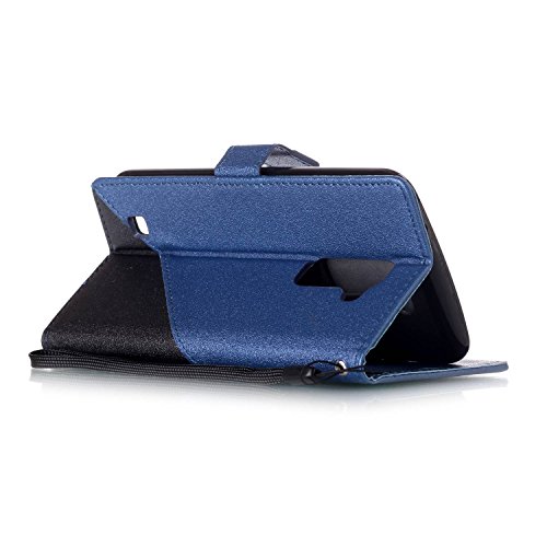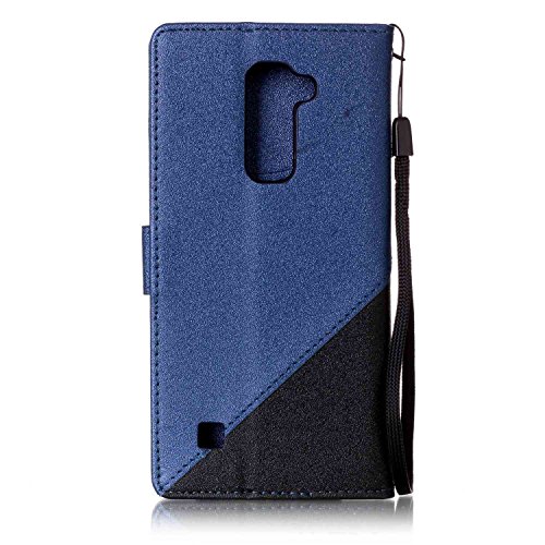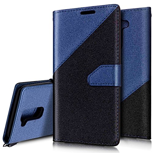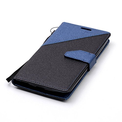 LG K10 Wallet Case,LG K10 Flip Case,PHEZEN Elegant Two-color Design Book Style PU Leather Magnetic Flip Cover Protective Case with Card Slots for LG K10, Black + Blue