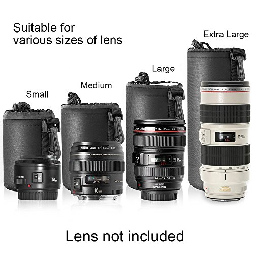 Selens Black Protective DSLR camera Drawstring Soft Neoprene Lens Pouch Bag for Sony Canon Nikon Pentax Olympus Panasonic, Large Size