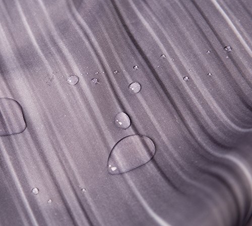- WATER REPELLENT: This curtain's expertly manufactured fabric provides it with a firm yet smooth texture, which promotes water bead formation and prevents curtain soaking and bathroom floor messes. Small water beads form across the curtain, affording gentle water removal and swift curtain drying.