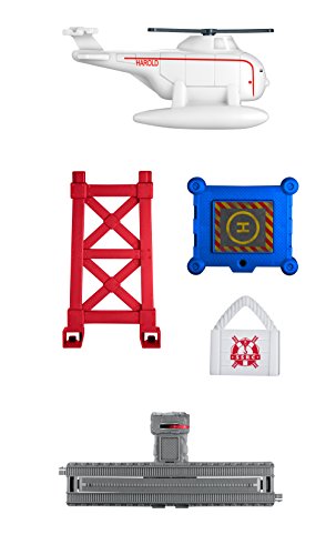 -. Feature : Accessory pack includes Harold, helipad, track base with brake-track, and cargo piece / Cargo piece can hook to the bottom of Harold / Press the helipad to activate lights, sounds, and phrases / Includes over 10 sounds and phrases / Track base connects to TrackMaster track (additional track sold separately and subject to availability)