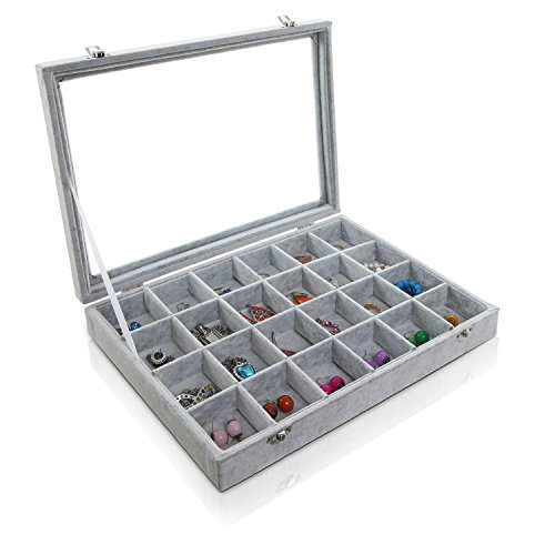 Gray Velvet Decorative 24 Slot Jewelry Display Box / Dresser Top Necklace Earrings Organizer - MyGift